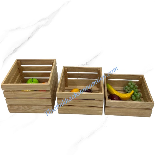 √ Mô tả : Hộp gỗ vuông trưng bày trái cây, bánh mì