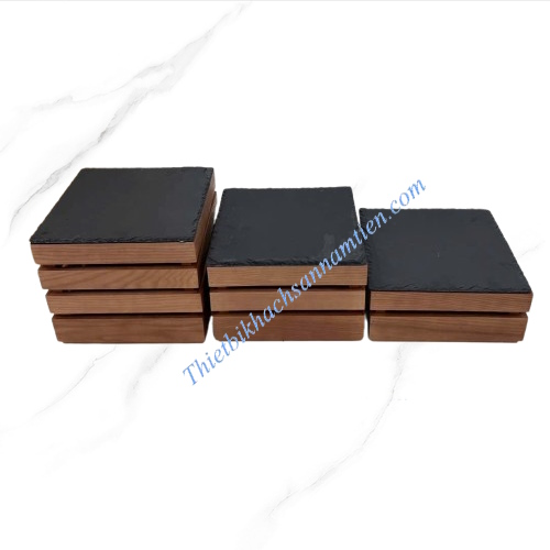 √ Mô tả : Kệ gỗ nâu tấm đá đen trưng bày thức ăn buffet đa tầng