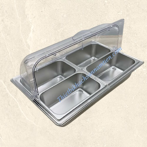 √ Mô tả : Khay trưng bày thức ăn buffet nắp PC 4 ngăn