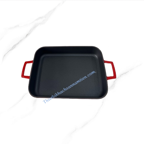 Chảo Gang Chữ Nhật Tráng Men Đỏ [30*22cm] NT710032
