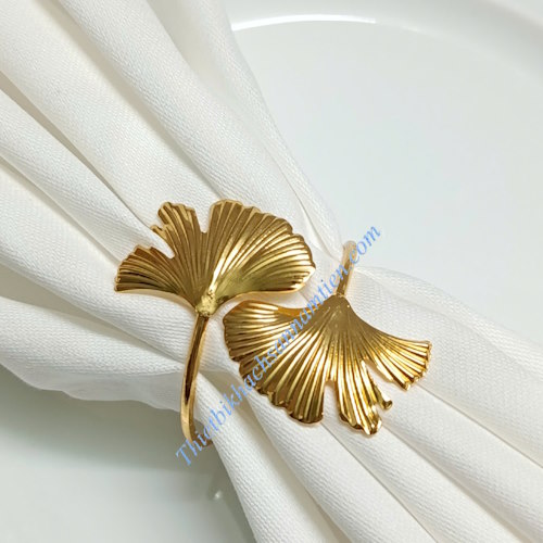 √ Mô tả: Khóa khăn ăn nhà hàng Inox mạ vàng hình lá
